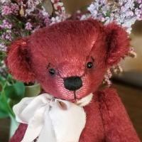 Je me suis inspirée d'un ours ancien que j'ai à l'atelier pour dessiner son patron. Le choix de la couleur s'est imposée toute seule. Je trouve ce mohair vieux rouge exceptionnel ...
